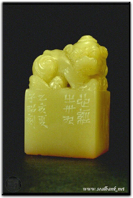 黃嘗銘.四十二歲/刻〔依般若波羅蜜多故〕長方朱文印。邊款為【心經之卅九。乙亥夏,子昭刻。】芙蓉石。