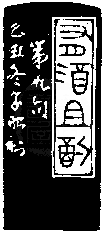 黃嘗銘.卅二歲/刻〔有酒且酌〕正方朱文縱格印。邊款為【有酒且酌。第九句。乙丑冬,子昭刻。】原印今藏於林居正。泰來玳瑁。