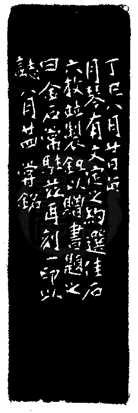 黃嘗銘.廿四歲/刻〔金石常駐〕正方朱文借邊印。邊款為【丁巳八月廿日,與月琴有文定之約,選佳石六枚并製鈕以贈,書題之曰:金石常駐,茲再刻一印以誌。八月廿四,嘗銘。】原印今藏於黃嘗銘。泰來石。