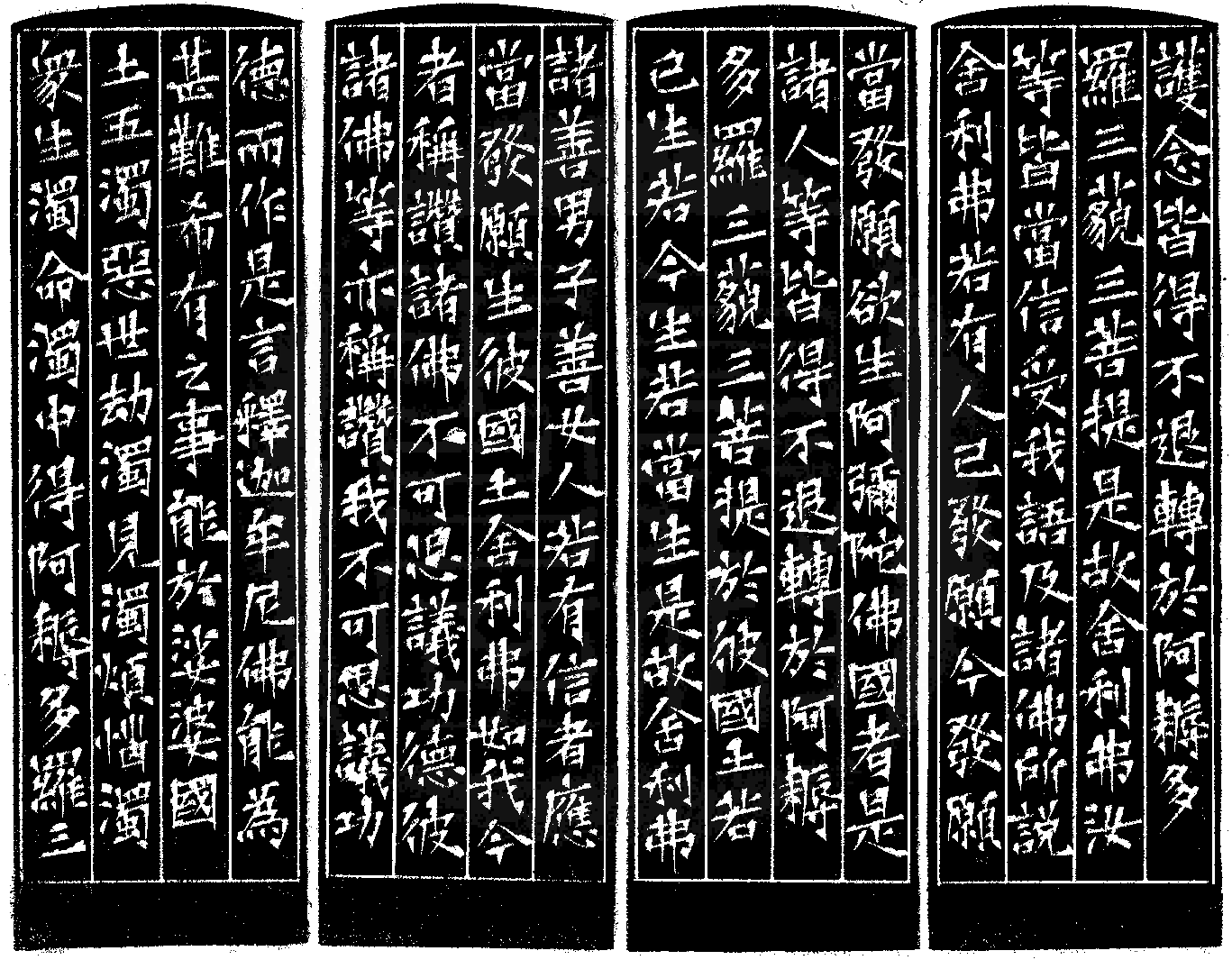 | | 印文:阿彌陀佛 | | 約 橫 2.8 X 豎 2.8 公分 邊款圖 | | 黃嘗銘.卅七歲/刻〔阿彌陀佛〕正方朱文印。邊款為【護念,皆得不退轉於阿耨多羅三藐三菩提。是故舍利弗,汝等皆當信受我語,及諸佛所說。」「舍利弗。若有人已發願、今發願、當發願,欲生阿彌陀佛國者,是諸人等,皆得不退轉於阿耨多羅三藐三菩提,於彼國土,若已生、若今生、若當生。是故舍利弗,諸善男子、善女人,若有信者,應當發願,生彼國土。舍利弗,如我今者,稱讚諸佛不可思議功德,彼諸佛等,亦稱讚我不可思議功德,而作是言:『釋迦牟尼佛能為甚難希有之事,能於娑婆國土,五濁惡世,劫濁、見濁、煩惱濁、眾生濁、命濁中,得阿耨多羅三】原印今藏於陳川林。巴林石。 1990 年刻 |