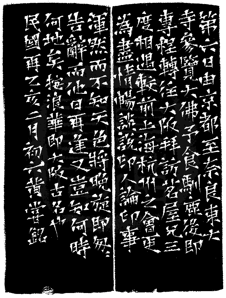 黃嘗銘.四十二歲/刻〔相印紅情在浪華〕正方白文印。邊款為【第六日,由京都至奈良東大寺,參覽大佛、予食馴鹿後,即專程轉往大阪拜訪茗屋兄,三度相遇,較前上海、杭州之會,更為盡情暢談,說印人、論印事,渾然而不知天色將晚,旋即匆匆告辭,而他日再逢,又豈知何時何地矣。按浪華即大阪古名也。民國再乙亥二月初六,黃嘗銘。】巴林凍。
