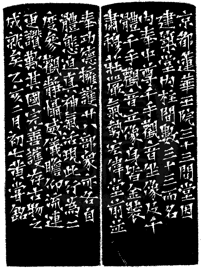 黃嘗銘.四十二歲/刻〔千一觀音廿八眾〕正方加框白文印。邊款為【京都蓮華王院三十三間堂,因建築堂內柱間數三十三而名,內奉中尊千手觀音坐像及千體千手觀音立像身,皆金裝肅穆莊嚴、氣勢宏偉,堂前並奉功德擁護廿八部眾,亦各自體態迫真、神氣活現,此行為二度參觀,靜攝威儀、瞻仰流連,更讚歎其國完善護存古物之成就矣。乙亥二月初七,黃嘗銘。】巴林凍。