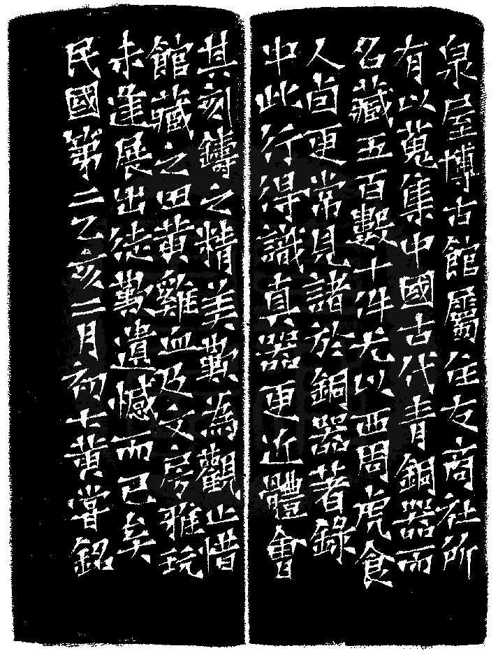 黃嘗銘.四十二歲/刻〔泉屋博古有名器〕正方加框白文印。邊款為【泉屋博古館,屬住友商社所有,以蒐集中國古代青銅器而名,藏五百數十件,尤以西周虎食人卣更常見諸於銅器著錄中,此行得識真器,更近體會其刻鑄之精美,歎為觀止,惜館藏之田黃雞血及文房雅玩未逢展出,徒歎遺憾而已矣。民國第二乙亥二月初七,黃嘗銘。】巴林凍。