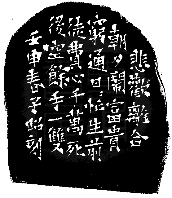 黃嘗銘.卅九歲/刻〔兩手空空〕自然形朱文印。邊款為【悲歡離合朝夕鬧,富貴窮通日日忙,生前徒費心千萬,死後空餘手一雙。壬申春,子昭刻。】巴林凍。