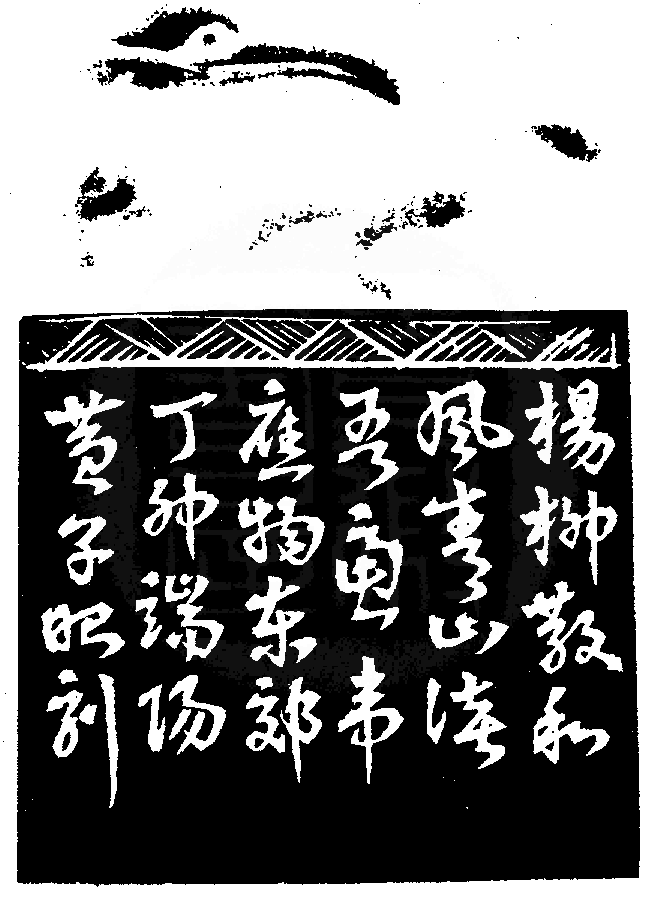 黃嘗銘.卅四歲/刻〔楊柳散和風青山澹吾慮〕長方細朱文印。邊款為【楊柳散和風,青山淡吾慮。韋應物東郊。丁卯端陽,黃子昭刻。】巴林石。