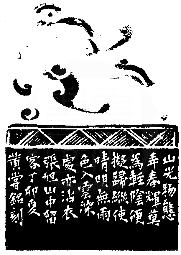 黃嘗銘.卅四歲/刻〔縱使晴明無雨色入雲深處亦沾衣〕長方白文印。邊款為【山光物態弄春煇,莫為輕陰便擬歸,縱使晴明無雨色,入雲深處亦沾衣。張旭山中留客。丁卯夏,黃嘗銘刻。】巴林石。