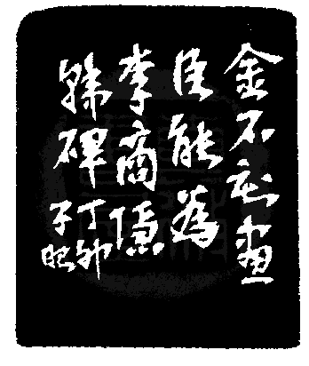 黃嘗銘.卅四歲/刻〔金石刻畫臣能為〕正方朱文印。邊款為【金石刻畫臣能為。李商隱韓碑。丁卯,子昭。】巴林石。