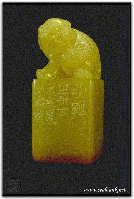 黃嘗銘.四十二歲/刻〔無有恐怖〕正方朱文印。邊款為【心經之卅五。乙亥夏,子昭刻。】芙蓉石。