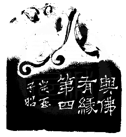 黃嘗銘.四十歲/刻〔與佛有緣〕長方白文印。邊款為【與佛有緣第四。癸酉,子昭。】芙蓉石。