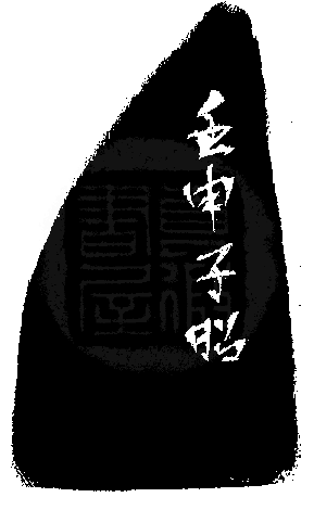 黃嘗銘.卅九歲/刻〔物外真游〕自然形朱文印。邊款為【壬申,子昭。】原印今藏於蕭榮府。巴林凍。
