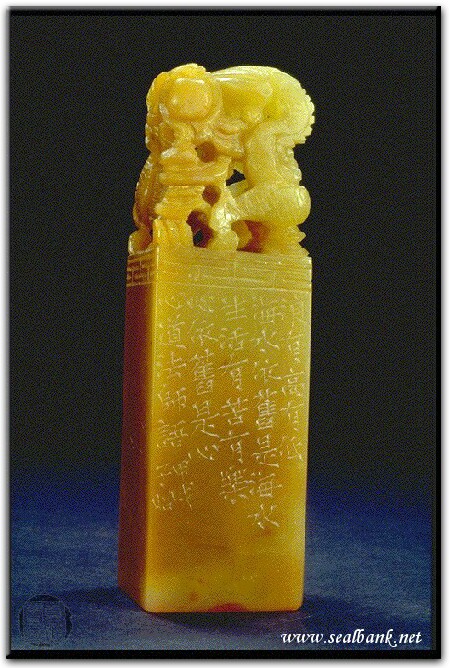 黃嘗銘.四十一歲/刻〔心還是心〕正方朱文借邊印。邊款為【浪有高有低,海水依舊是海水;生活有苦有樂,心依舊是心。心道法師語。甲戌,子昭。】原印今藏於林媛玉。青田石。
