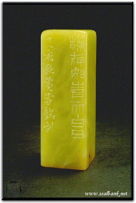 黃嘗銘.四十二歲/刻〔青天白日〕正方加框白文印。邊款為【操存如青天白日。乙亥秋,黃嘗銘刻。】原印今藏於蔡裕仁。青田凍。