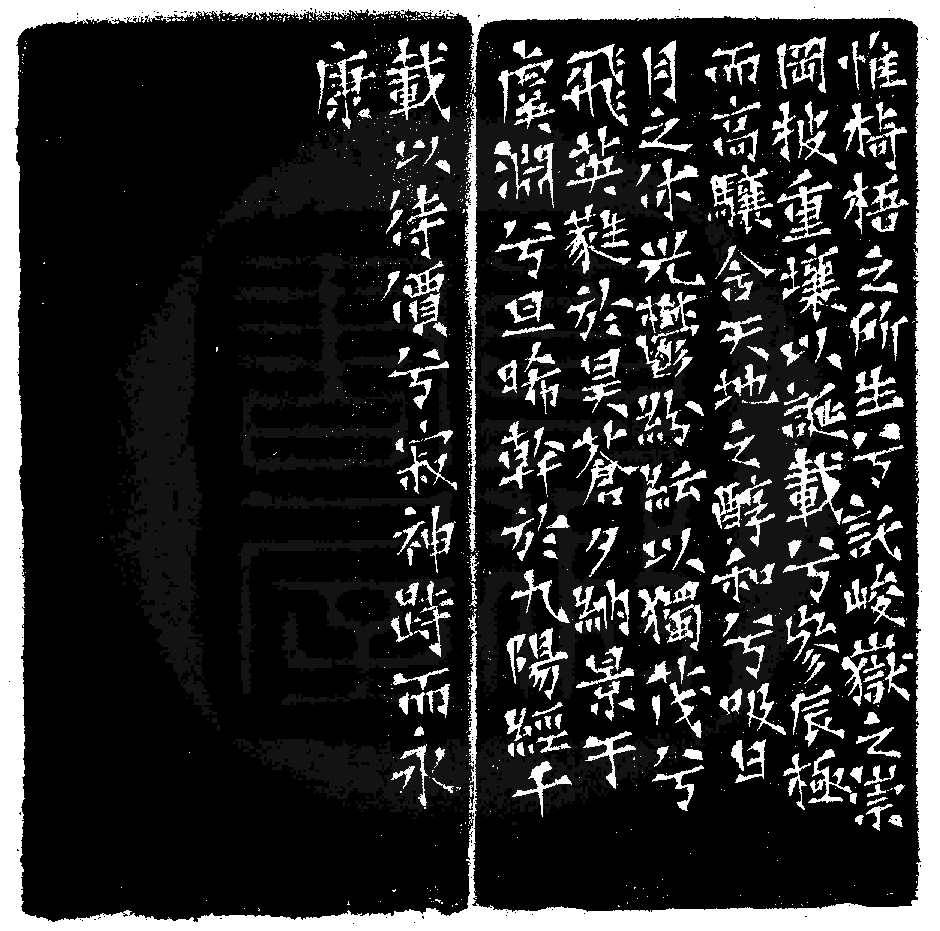 黃嘗銘.四十歲/刻〔經千載以待價兮寂神跱而永康〕正方白文印。邊款為【惟椅梧之所生兮,託峻嶽之崇岡。披重壤以誕載兮,參辰極而高驤。含天地之醇和兮,吸日月之休光。鬱紛紜以獨茂兮,飛英蕤於昊蒼。夕納景于虞淵兮,旦晞幹於九陽。經千載以待價兮,寂神跱而永康。】巴林石。