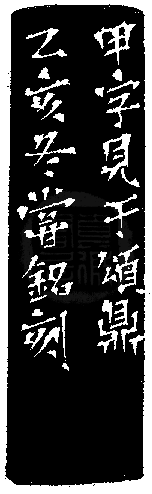 黃嘗銘.四十三歲/刻〔甲〕正方加框白文印。邊款為【甲字見于頌鼎。乙亥冬,嘗銘刻。】巴林凍。