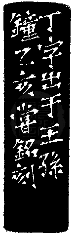 黃嘗銘.四十三歲/刻〔丁〕正方加框白文印。邊款為【丁字出于王孫鐘。乙亥,嘗銘刻。】巴林凍。