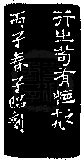 黃嘗銘.四十三歲/刻〔行之苟有恆〕正方粗朱文印。邊款為【行之苟有恆。之十九。丙子春,子昭刻。】巴林雞血。