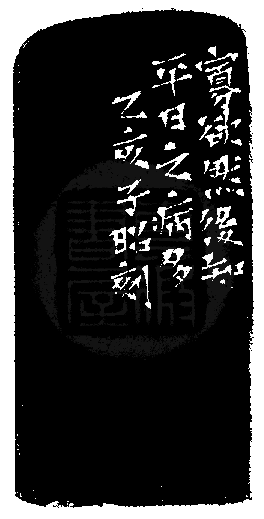 黃嘗銘.四十二歲/刻〔寡欲〕長方朱文印。邊款為【寡欲然後知平日之病多。乙亥,子昭刻。】原印今藏於王治國。昌化雞血。
