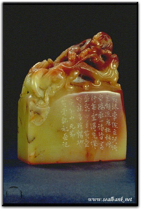 黃嘗銘.卅七歲/刻〔尋春須是先春早看花莫待花枝老〕長方朱文印。邊款為【節錄李後主詞,語意頗近唐杜秋娘金縷衣一詩,皆言行事宜得先機,並寓少年黃金時,應多珍惜也。庚午中元節,黃嘗銘刻並記。】原印今藏於施春茂。優質峨嵋石。