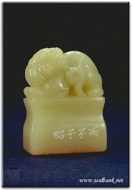 黃嘗銘.四十三歲/刻〔懷遠〕長方朱文印。邊款為【丙子,子昭。】原印今藏於羅德星。芙蓉石。