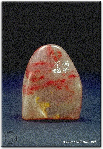 黃嘗銘.四十三歲/刻〔任所適〕自然形朱文印。邊款為【丙子,子昭。】原印今藏於任容清。巴林雞血。