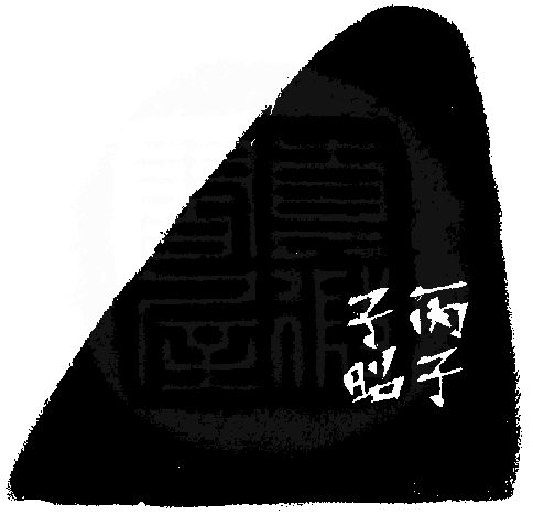 黃嘗銘.四十三歲/刻〔好事近〕自然形朱文印。邊款為【丙子,子昭。】原印今藏於陳美安。巴林雞血。