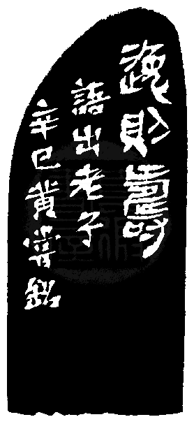 黃嘗銘.四十八歲/刻〔逸則壽〕正方朱文借邊印。邊款為【逸則壽。語出老子。辛巳,黃嘗銘。】青田凍。