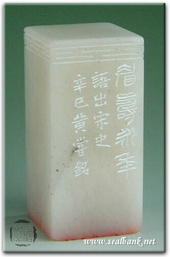 黃嘗銘.四十八歲/刻〔眉壽永年〕正方朱文借邊印。邊款為【眉壽永年。語出宋史。辛巳,黃嘗銘。】荔枝凍。