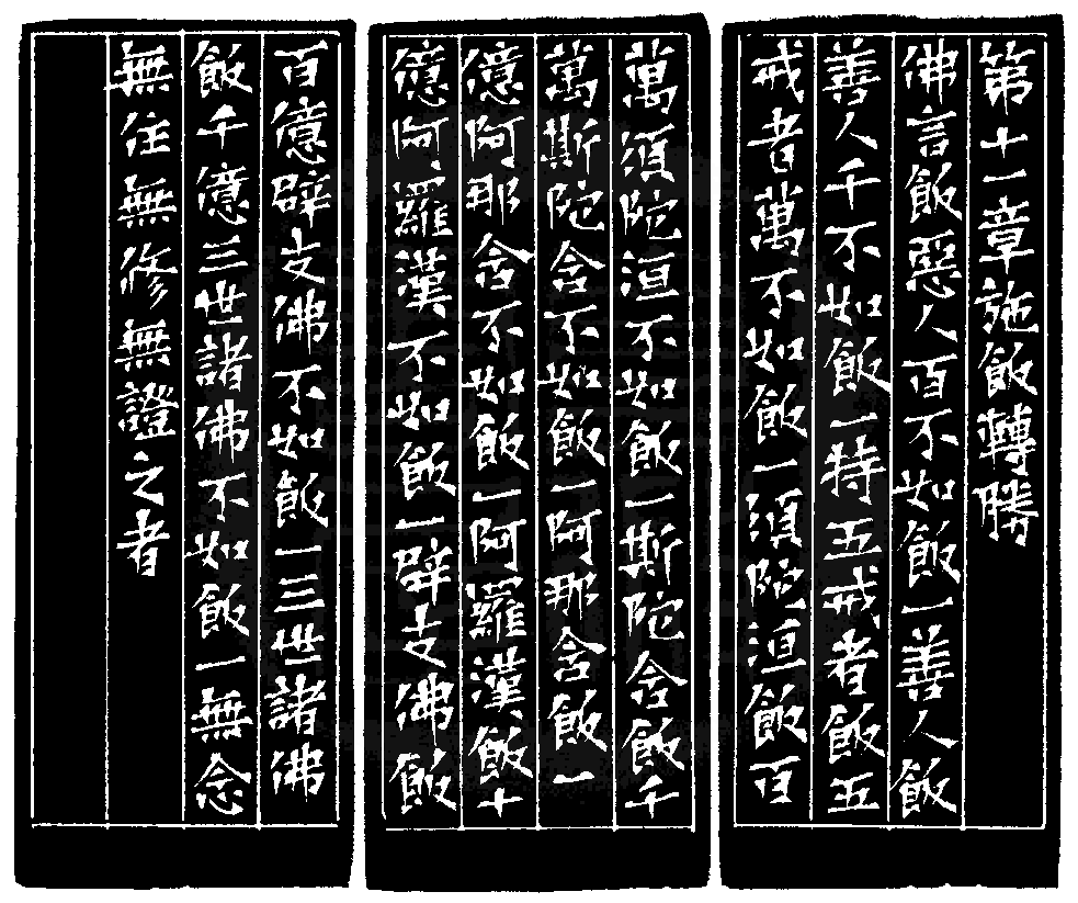 | | 印文:施飯轉勝 | | 約 橫 2.6 X 豎 2.6 公分 印面圖 | | 黃嘗銘.四十五歲/刻〔施飯轉勝〕正方朱文印。邊款為【第十一章施飯轉勝。佛言:飯惡人百,不如飯一善人;飯善人千,不如飯一持五戒者;飯五戒者萬,不如飯一須陀洹;飯百萬須陀洹,不如飯一斯陀含;飯千萬斯陀含,不如飯一阿那含;飯一億阿那含,不如飯一阿羅漢;飯十億阿羅漢,不如飯一辟支佛;飯百億辟支佛,不如飯一三世諸佛;飯千億三世諸佛,不如飯一無念無住無修無證之者。】 1998 年刻 |