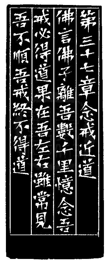 黃嘗銘.四十五歲/刻〔念戒近道〕正方加框白文印。邊款為【第三十七章念戒近道。佛言:佛子離吾數千里,憶念吾戒,必得道果。在吾左右,雖常見吾,不順吾戒,終不得道。】
