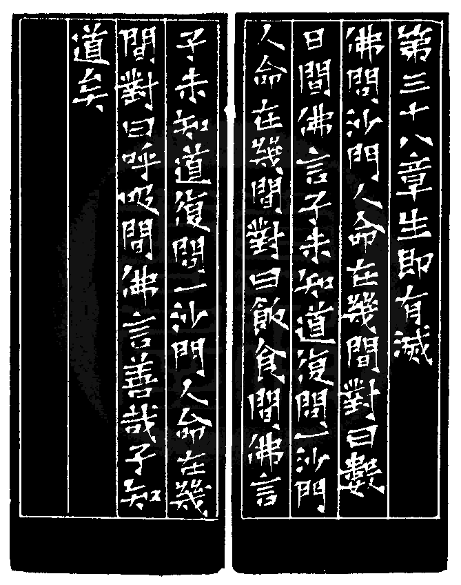 黃嘗銘.四十五歲/刻〔生即有滅〕正方朱文印。邊款為【第三十八章生即有滅。佛問沙門:人命在幾間?對曰:數日間。佛言:子未知道。復問一沙門:人命在幾間?對曰:飯食間。佛言:子未知道。復問一沙門:人命在幾間?對曰:呼吸間。佛言:善哉,子知道矣!】
