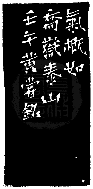 黃嘗銘.四十九歲/刻〔喬嶽泰山〕正方白文印。邊款為【氣概如喬岳泰山。壬午,黃嘗銘。】江西石。