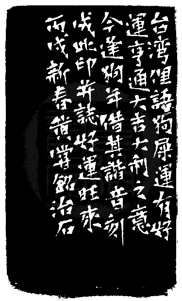 黃嘗銘.五十三歲/刻自用印〔好狗駛運〕正方白文印。邊款為【台灣俚語狗屎運有好運亨通、大吉大利之意,今逢狗年,借其諧音刻成此印并誌好運旺來。丙戌新春,黃嘗銘治石。】江西石。平頂。