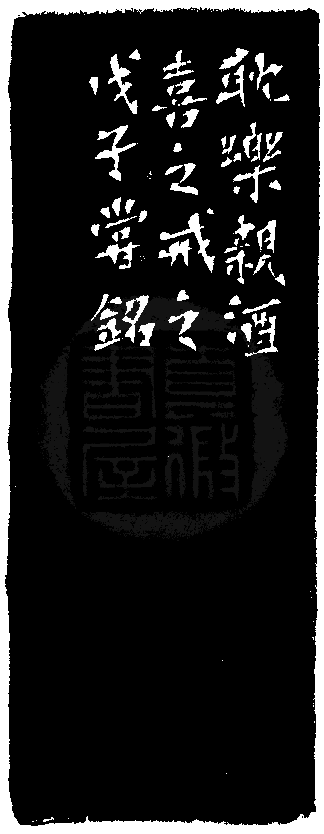 黃嘗銘.五十五歲/刻〔耽樂親酒〕正方白文印。邊款為【耽樂親酒,喜之戒之,戊子,嘗銘。】江西石。平頂。