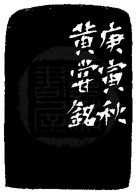 黃嘗銘.五十七歲/刻〔任所適〕正方細白文印。邊款為【庚寅秋,黃嘗銘。】巴林雞血石。平頂。