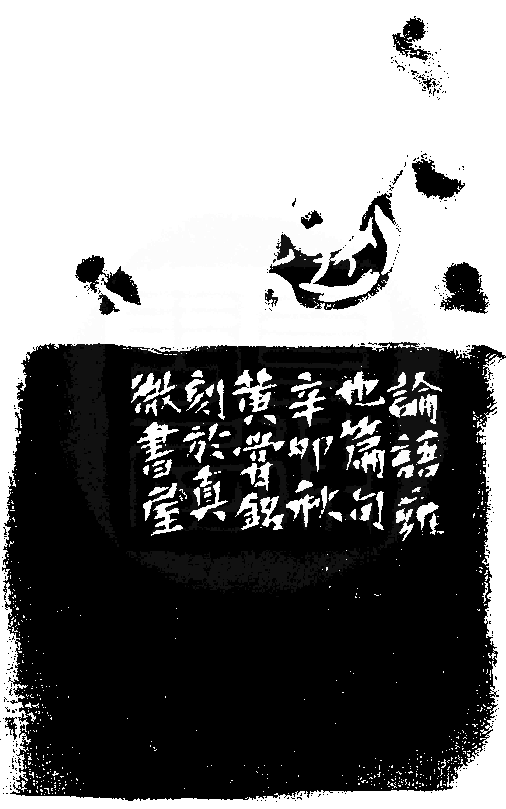黃嘗銘.五十八歲/刻〔仁者先難而後獲〕長橢圓朱文印。邊款為【《論語.雍也》篇句。辛卯秋,黃嘗銘刻於真微書屋。】芙蓉石。