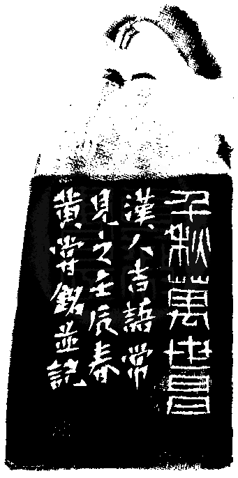 黃嘗銘.五十九歲/刻〔千秋萬世昌〕正方朱文印。邊款為【千秋萬世昌。漢人吉語常見之。壬辰春,黃嘗銘並誌。】白田。豬形鈕。