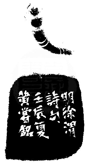 黃嘗銘.五十九歲/刻〔信手拈來自有神〕長方朱文印。邊款為【明徐渭詩句。壬辰夏,黃嘗銘。】