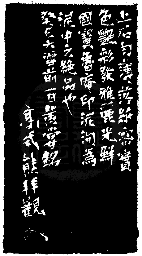 黃嘗銘.六十歲/刻〔魯盦印泥〕正方朱文印。邊款為【上石勻薄,落紙密實,色豔彩發,雅麗光鮮,國寶魯庵印泥洵為泥中之絕品也。癸巳大雪前一日,黃嘗銘。高式熊拜觀。】巴林石。平頂。