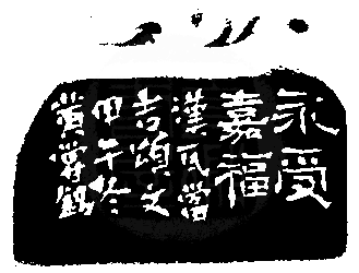 黃嘗銘.六十一歲/刻〔永受嘉福〕正方加框白文印。邊款為【永受嘉福。漢瓦當吉頌文。甲午冬,黃嘗銘。】