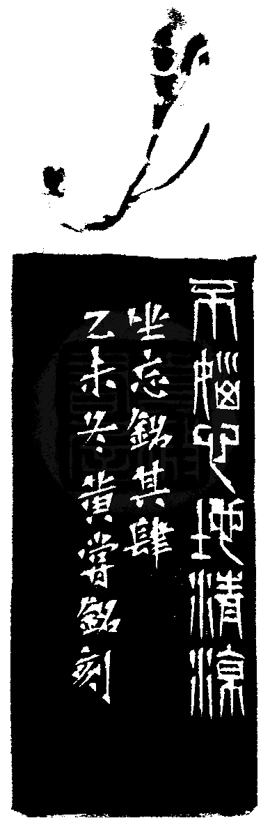 黃嘗銘.六十二歲/刻〔不惱心地清涼〕正方加框白文印。邊款為【不惱心地清涼。坐忘銘其肆,乙未冬,黃嘗銘刻。】老撾石。象鈕。