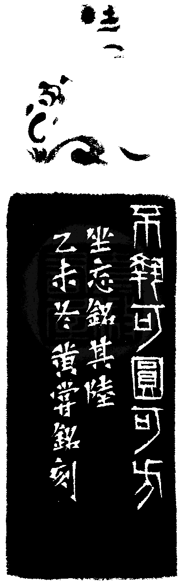 黃嘗銘.六十二歲/刻〔不執可圓可方〕正方白文印。邊款為【不執可圓可方。坐忘銘其陸,乙未冬,黃嘗銘刻。】老撾石。雙獸鈕。