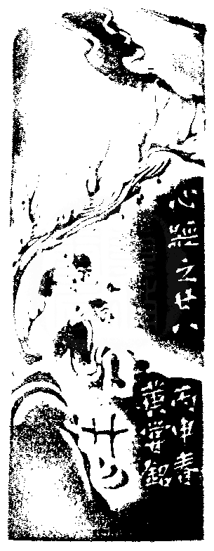 黃嘗銘.六十三歲/刻〔無智亦無得〕正方細朱文印。邊款為【心經之廿八。丙申春,黃嘗銘。】昌化黃凍石。山水薄意。