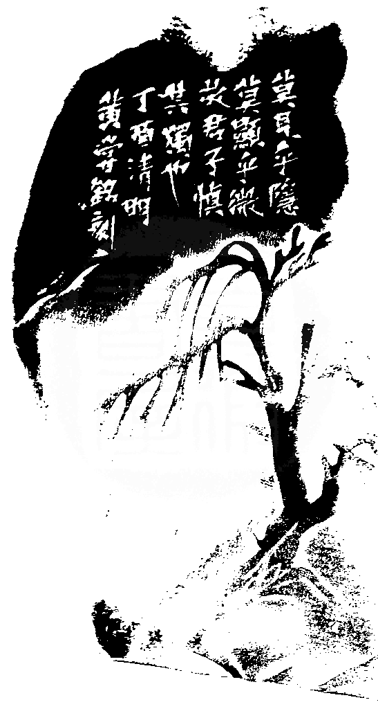 黃嘗銘.六十四歲/刻〔慎其獨〕自然形朱文印。邊款為【莫見乎隱,莫顯乎微,固君子慎其獨也。丁酉清明,黃嘗銘刻。】芙蓉石。薄意。