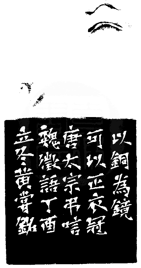 黃嘗銘.六十四歲/刻〔鏡銅正衣冠〕正方朱文印。邊款為【以銅為鏡可以正衣冠。唐太宗弔唁魏徵語。丁酉立冬,黃嘗銘。】老撾石。獸鈕。