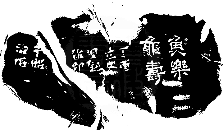 黃嘗銘.六十四歲/刻〔樂壽〕自然形朱文寬細邊印。邊款為【魚樂龜壽。丁酉立冬,因鈕作印,子昭治石。】老撾田石。魚龜鈕。