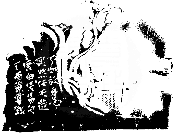 黃嘗銘.六十四歲/刻〔不如放身心冥然任天造〕自然形朱文印。邊款為【不如放身心,冥然任天造。唐白居易句。丁酉,黃嘗銘。】老撾田黃石。山水薄意。