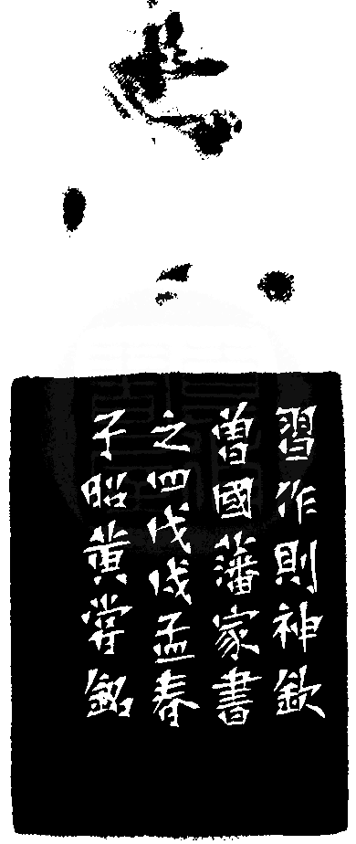 黃嘗銘.六十五歲/刻〔習作則神欽〕正方白文縱格印。邊款為【習作則神欽。曾國藩家書之四。戊戌孟春,子昭黃嘗銘。】老撾石。獸鈕。