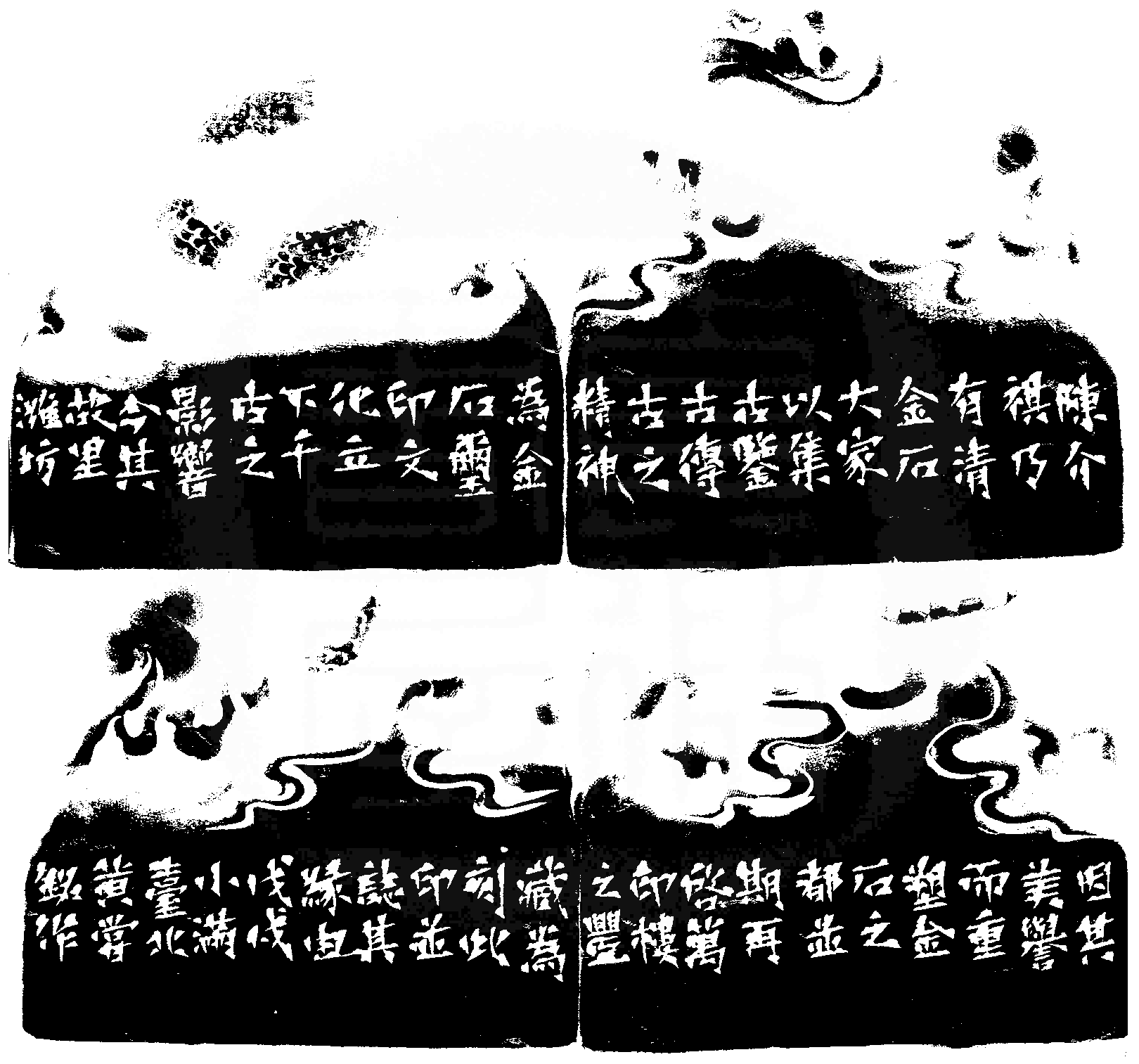 黃嘗銘.六十五歲/刻〔金石之都〕正方白文印。邊款為【陳介祺乃有清金石大家,以集古、鑒古、傳古之精神,為金石璽印文化立下千古之影響。今其故里濰坊因其美譽而重塑金石之都,並期再啟萬印樓之豐藏,為刻此印並誌其緣由。戊戌小滿,臺北黃嘗銘作。】老撾石。龍鈕。