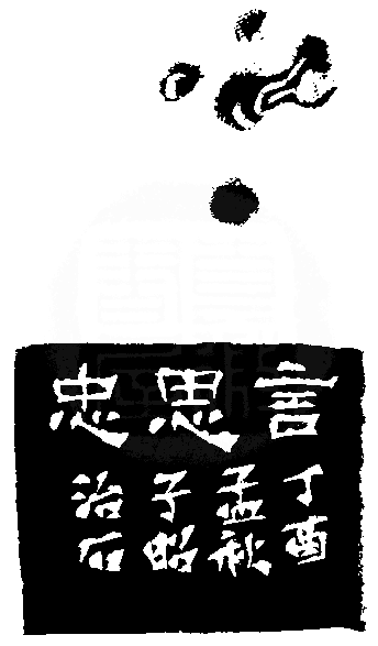 黃嘗銘.六十四歲/刻〔言思忠〕長方加框白文印。邊款為【言思忠。丁酉孟秋,子昭治石。】芙蓉石。獸鈕。