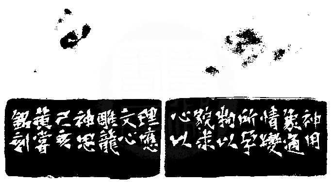 黃嘗銘.六十六歲/刻〔神用象通〕正方白文印。邊款為【神用象通,情變所孕。物以貌求,心以理應。文心雕龍神思。己亥,黃嘗銘刻。】芙蓉石。獸鈕。